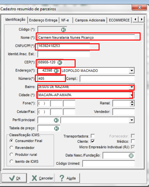 Cadastro PJ pegar numero da Inscrição Estadual no Sintegra (http://www.sintegra.gov.br/ )
