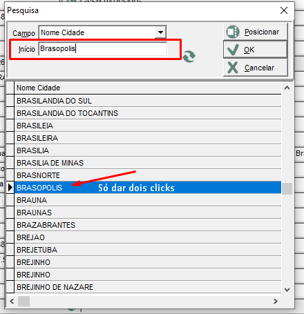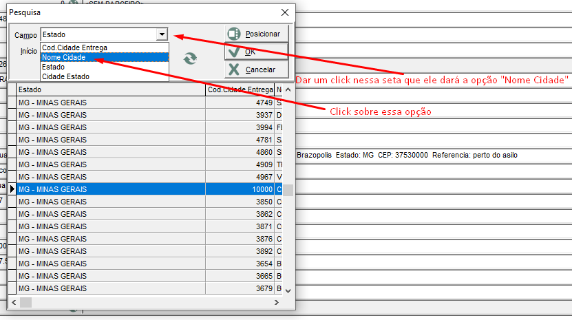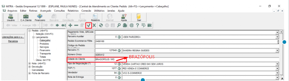 Após localizar a cidade, voltamos para o Mitra e na aba “Cidade do Cliente” escrevemos a cidade correta, conforme está nos Correios (tudo maiúsculo e incluindo o estado), não esquecer de salvar a alteração.
