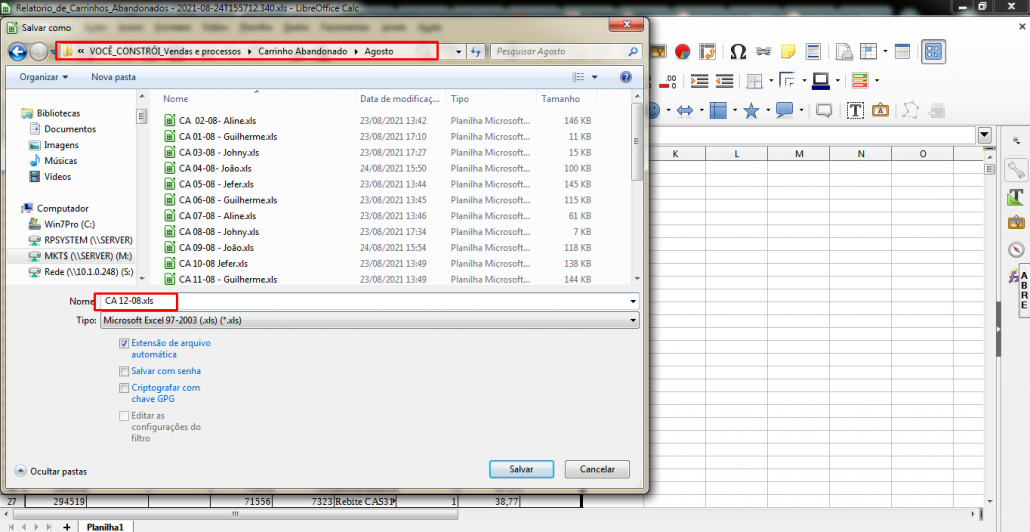 Salvar em M:\VOCÊ_CONSTRÓI_Vendas e processos\Carrinho Abandonado