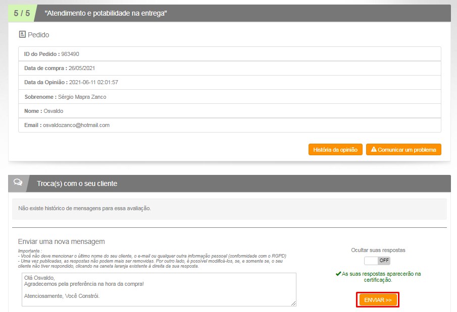 São as avaliações dos clientes que fez compra conosco. Para responder, é necessário acessar o site e verificar qual não foi respondida ainda.