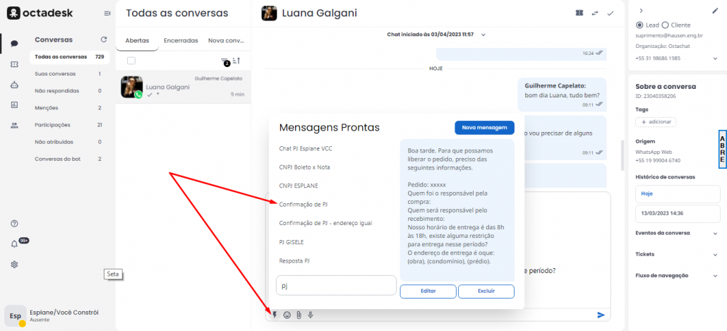 O questionário está nas “respostas salvas” do Octa, segue imagem: