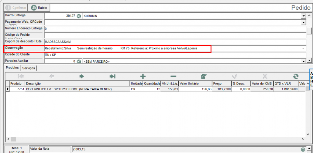 Se o pedido foi pago por PIX ou boleto – fazer as liberações no Mitra e incluir as informações de entrega no campo ‘Observação”