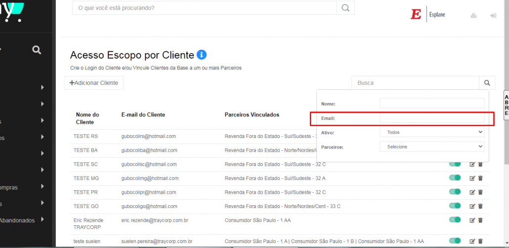 Dentro desta área devemos Localizar o cliente através de seu e-mail
