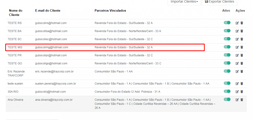 Por exemplo, o parceiro “Revenda Fora do Estado – Sul/Sudeste – 32 A” – Significa que o cliente está localizado Fora do Estado – Sul/Sudeste que sua tabela de preço no mitra é a 32 e que ele possui 14,99% de desconto