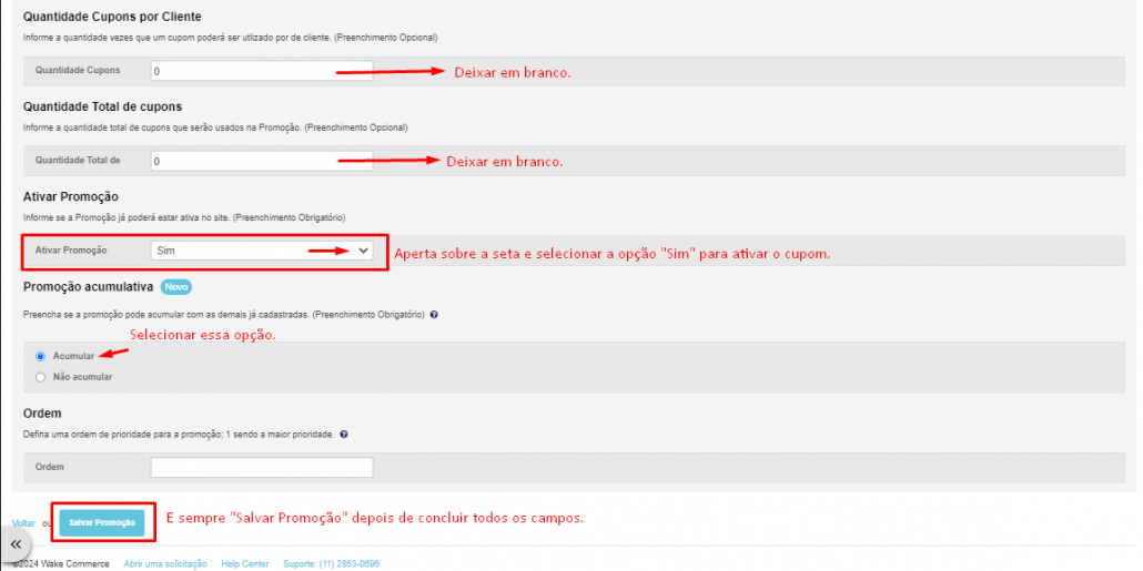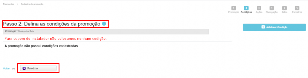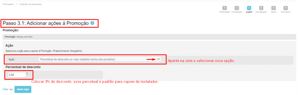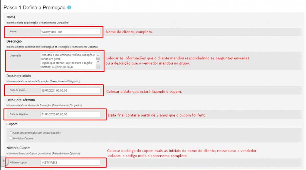 Informações necessárias para criar o cupom para instalador: