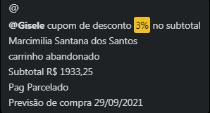 Cupom de 3% : valores maiores que R$ 1.000,00.