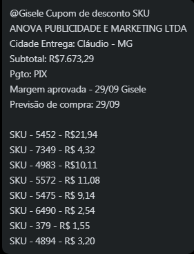 Motivo do cupom: Margem – Nome da pessoa que aprovou e data da aprovação.