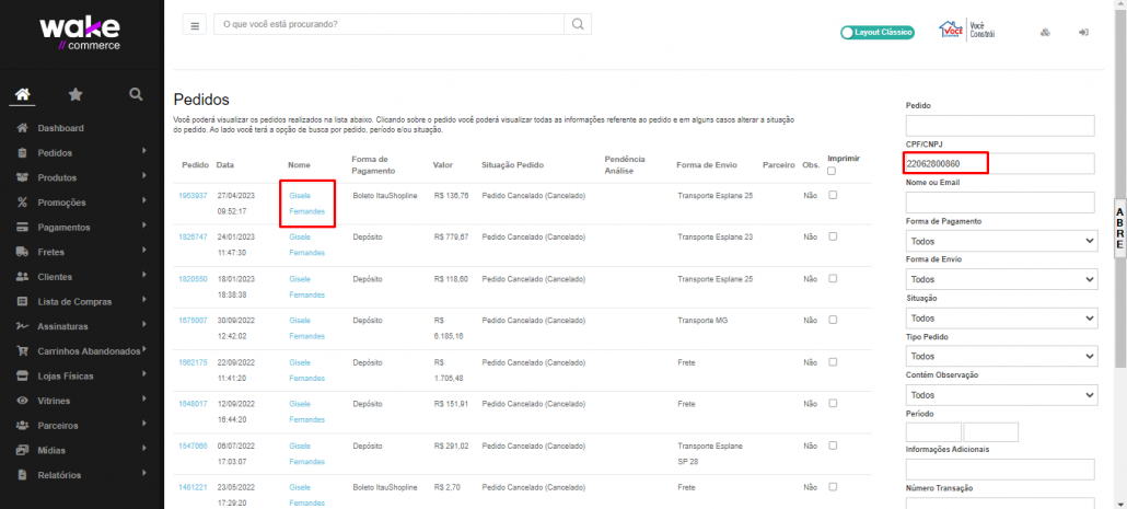 Após liberação de crédito no Mitra, procurar pelo pedido na Wake> clicar em cima do nome da cliente e seguir o passo a passo: