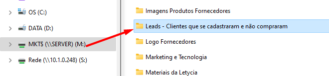 Na pasta da rede “M:\Leads – Clientes que se cadastraram e não compraram” estarão disponíveis planilhas extraídas da Tray Corp by FBits contendo informações básicas de clientes que se cadastraram na Você Constrói, porém ainda não fecharam pedido na plataforma.