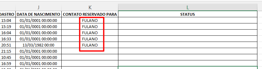 Além disso, para que não seja feito contato para o mesmo cliente por dois vendedores, “reservem” colocando o seu nome na coluna K “CONTATO RESERVADO PARA” e façam uma cópia dessas informações localmente. Como regra, só será permitido reservar 5 de cada vez. Após realizado o contato com estes 5, atualize a coluna L “STATUS” e poderá reservar outros 5.