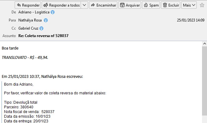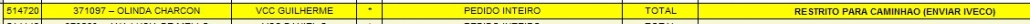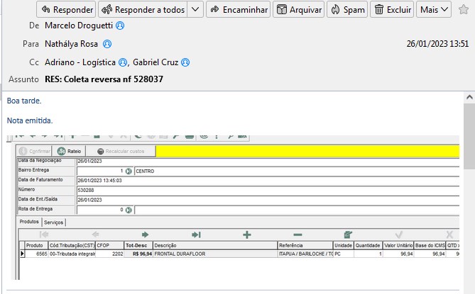 No exemplo abaixo, o pedido retornou pois enviamos em caminhão grande, precisamos reenviar em uma iveco