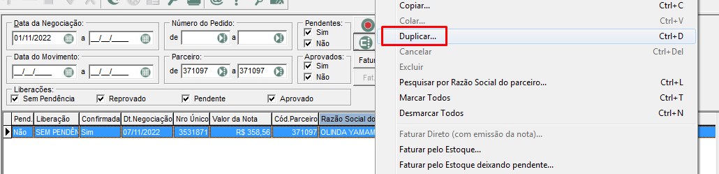 No mitra, para liberar o pedido, é necessário alterar o Tipo de Negociação para 23: