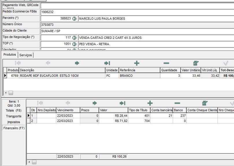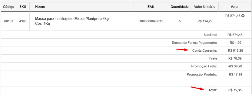 No caso citado acima, o cliente tinha um crédito e fez um novo pedido onde pagou uma diferença por depósito: