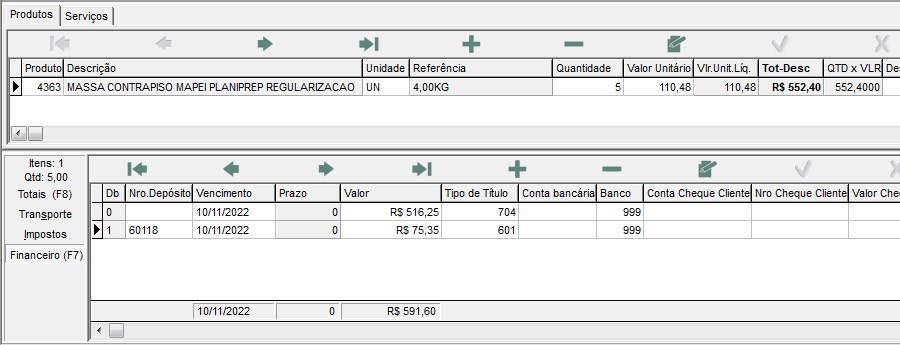 Arrumar o valor do pedido e incluir na aba financeiro uma linha com o valor do depósito + valor do crédito
