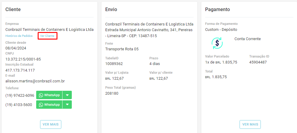 Procurar pelo pedido na Wake e clicar em ver cliente: