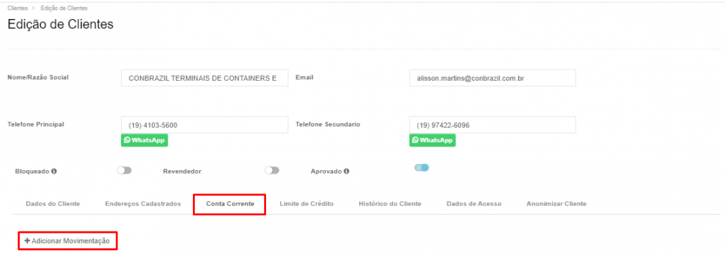 Nessa situação, faltou enviar 01 cola e o cliente não quer mais o material e solicitou para deixar de crédito para próxima compra, então é necessário colocar o valor de R$ 149,34 de crédito no cadastro do cliente dentro da Wake para que ele possa utilizar quando for fazer um novo pedido.