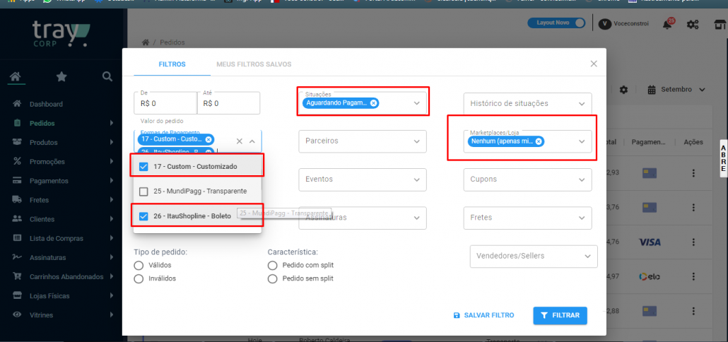 Consultar os não pagos no Admin usando os filtros, conforme imagem: