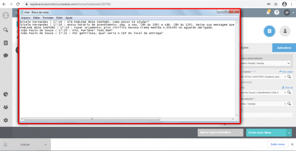 Alguns tickets de chat tem o histórico da conversa em formato TXT.