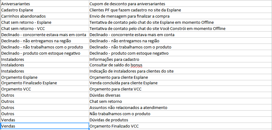 Segue lista com os assuntos mais utilizados: