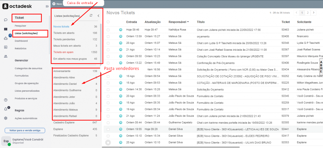 No OctaDesk os e-mails são chamados de Ticket.