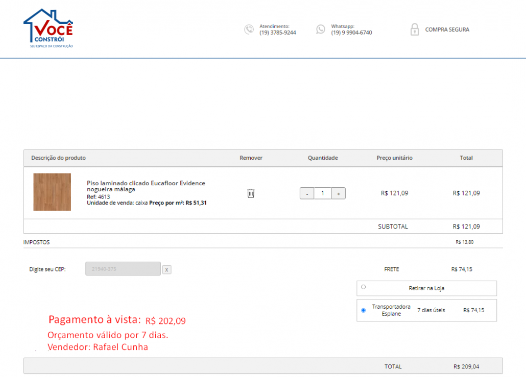 Os orçamentos encaminhados aos clientes da Você Constrói são enviados direto da pagina de carrinho do site.