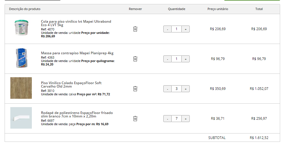- Massa de regularização (salvo linha Loose Lay – autoportante).