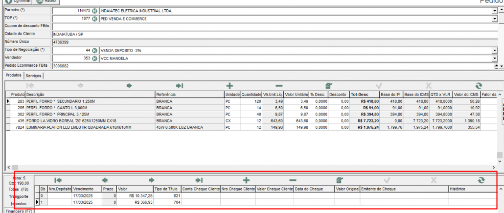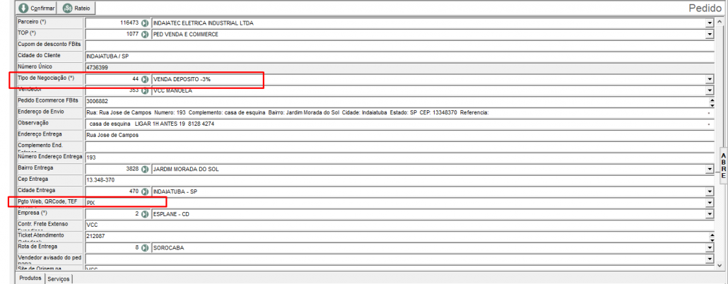 Para liberar pedido no qual o cliente utilizou o crédito disponível e pagou a diferença pelo pix qrcode o cabeçalho continua igual