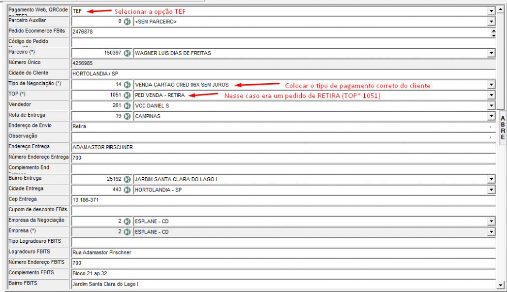 OBS: Caso for TOP 1063 (entrega futura): O cliente faz o pagamento no balcão e quer que a gente entregue o pedido ( seguir o processo de como liberar o pedido)