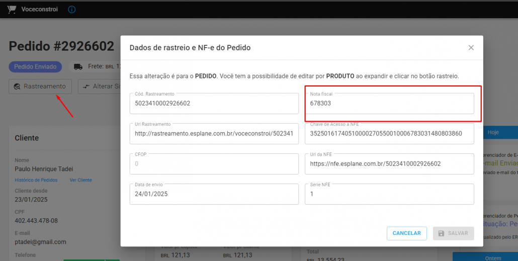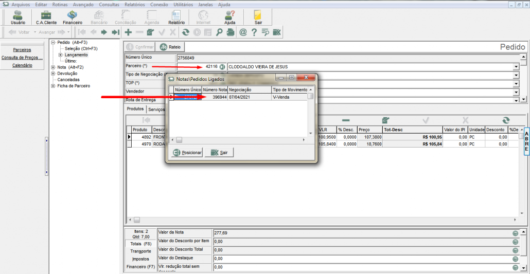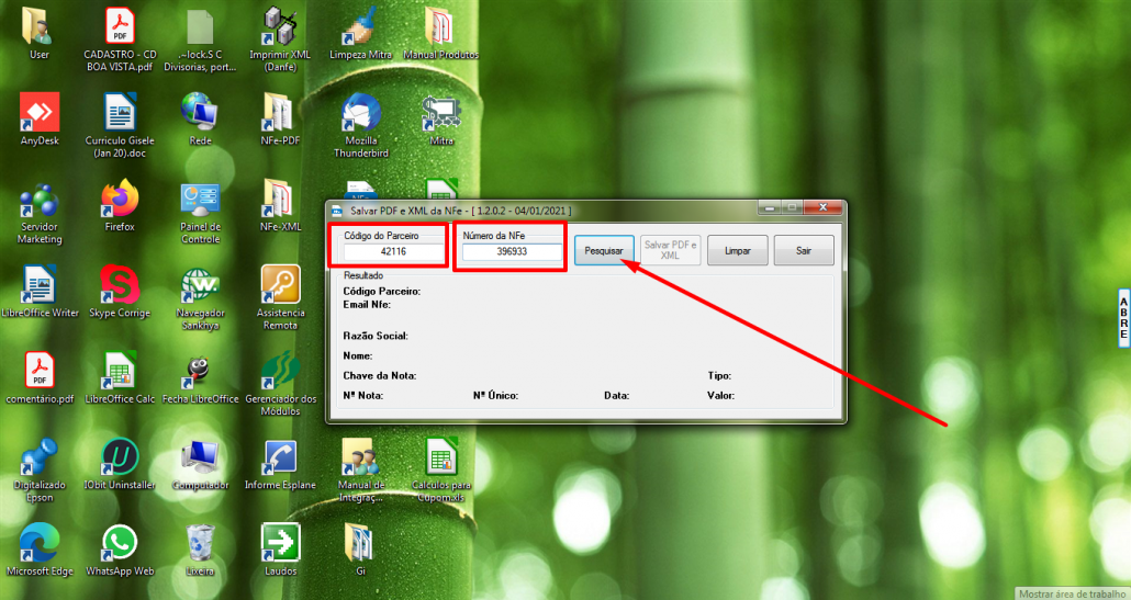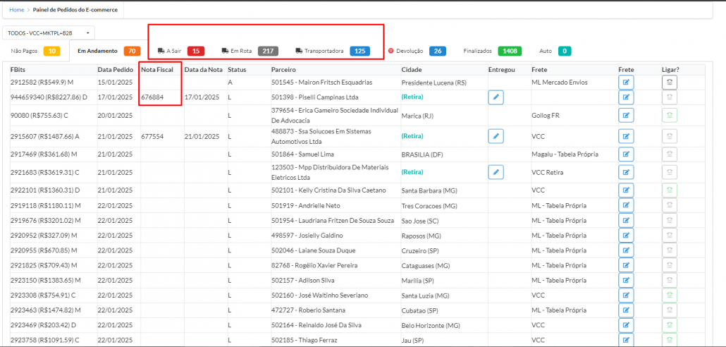 Vai precisar do código do parceiro e numero da nota fiscal.