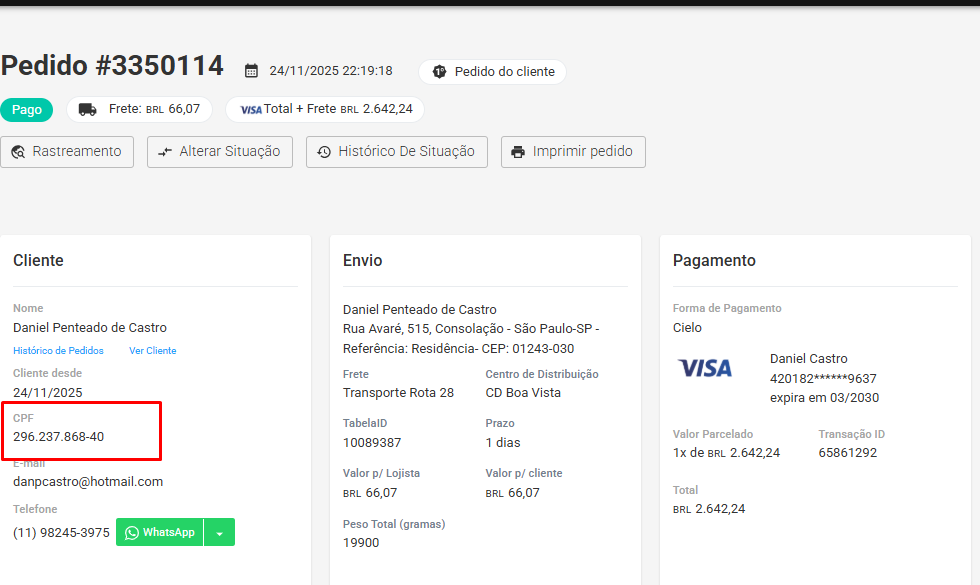 Top 1077 (se for entrega) ou TOP 1051 (se for retira)