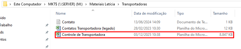 Mkt – Letícia – Transportadora – Controle de Transportadora.
