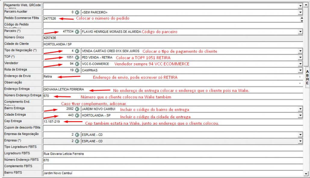 Quando tiver que refazer um pedido do zero, seguindo as informações da Wake.