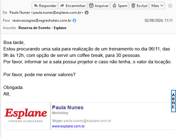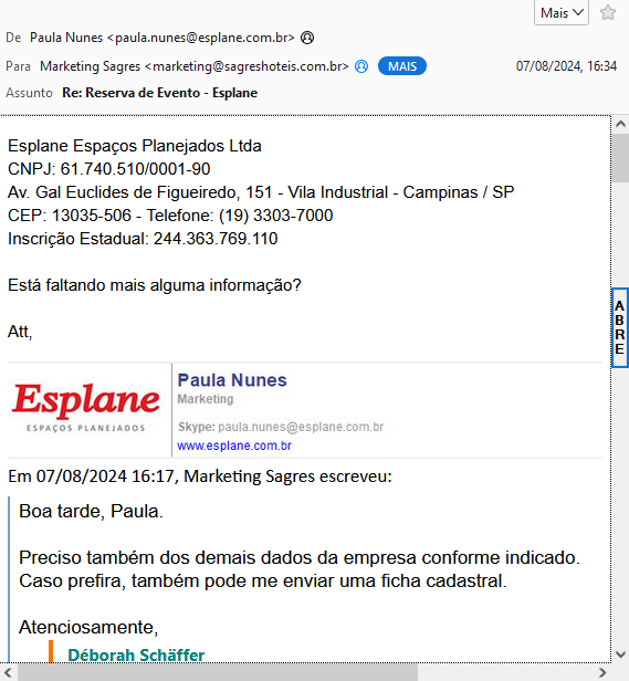 - Depois de ter passado as informações do evento e a ficha cadastral para o hotel, eles iram mandar os dados bancários, mas antes de agendar o pagamento com o financeiro, precisamos do “Ok” do Daniel.